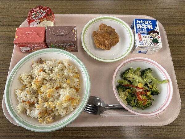 今日は2学期最後の給食だったので、少し早めのクリスマス献立にしました。