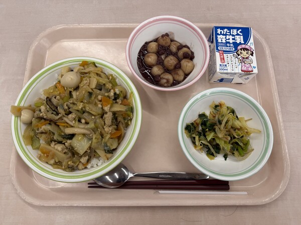 さて、今年は「午年」ですね。午年にちなんで、新年最初の給食にうま煮丼を出しました。子どもたちからも「美味しかった!」という声をたくさん聞くことが出来、とても嬉しかったです。